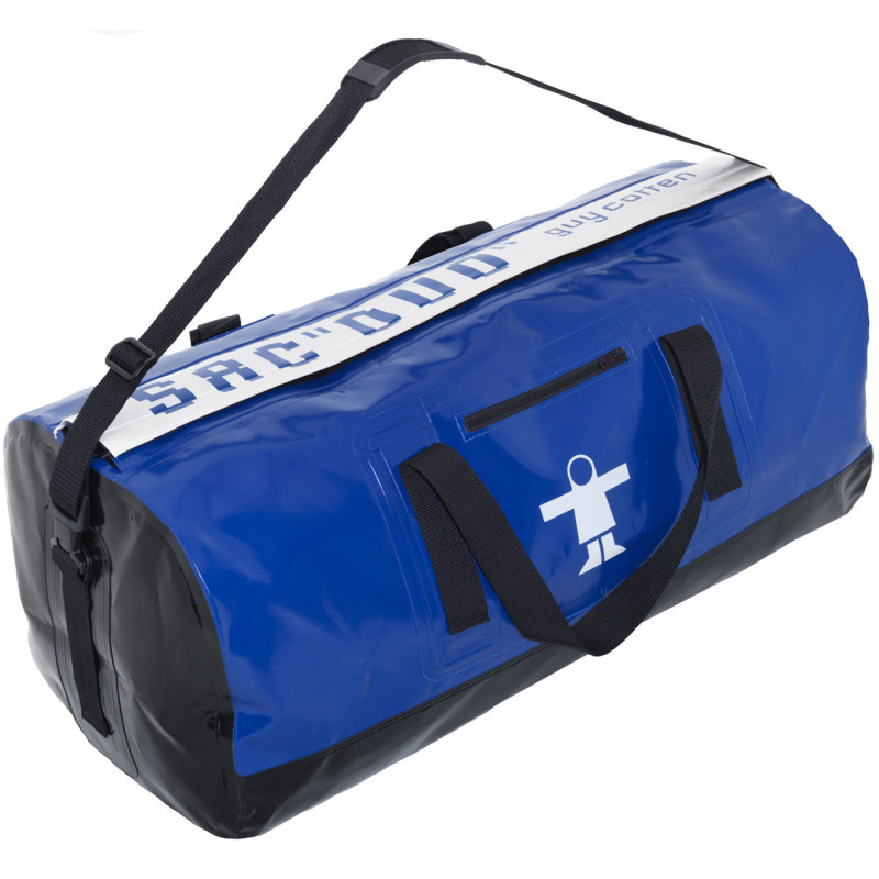 The double compartment holdall! It keeps wet clothing separate. Highly resistant. Bottom and body of bag waterproof with welded seams. Semi-waterproof because of the zip and self-grip flap. Side zip pocket. Adjustable removable shoulder strap. Adjustable straps on one side in which to slide flippers, sleeping bag, boots, etc. Smooth bottom. Size: 33X75 cm and an approximately 80 litre capacity.