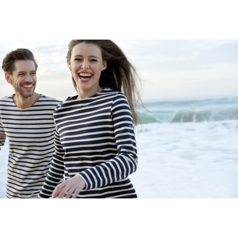 Intemporelle, graphique et décontractée, la marinière signe un état d'esprit, un art de vivre à la française. Léger, le modèle Minquiers moderne se transpose à différents styles au rythme des saisons.