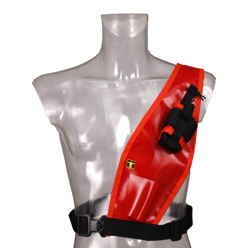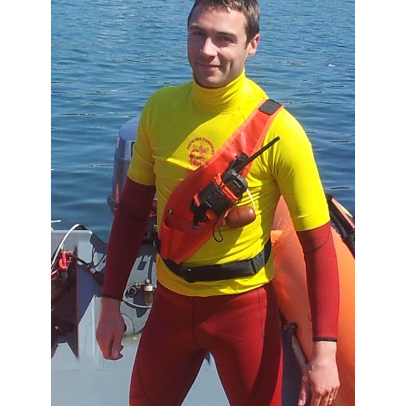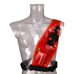 Ambidextrous article. Takes all types of VHF. Adjustable belt with clip fastener. Elastic safety cord, fastened by clip. A handsfree kit can be fitted. Place for switch.