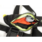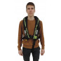 - Ergonomic, very short, therefore not too constricting, with a wide neckline that favours head movement and distributes the weight of the waistcoat over the shoulders rather than the neck.