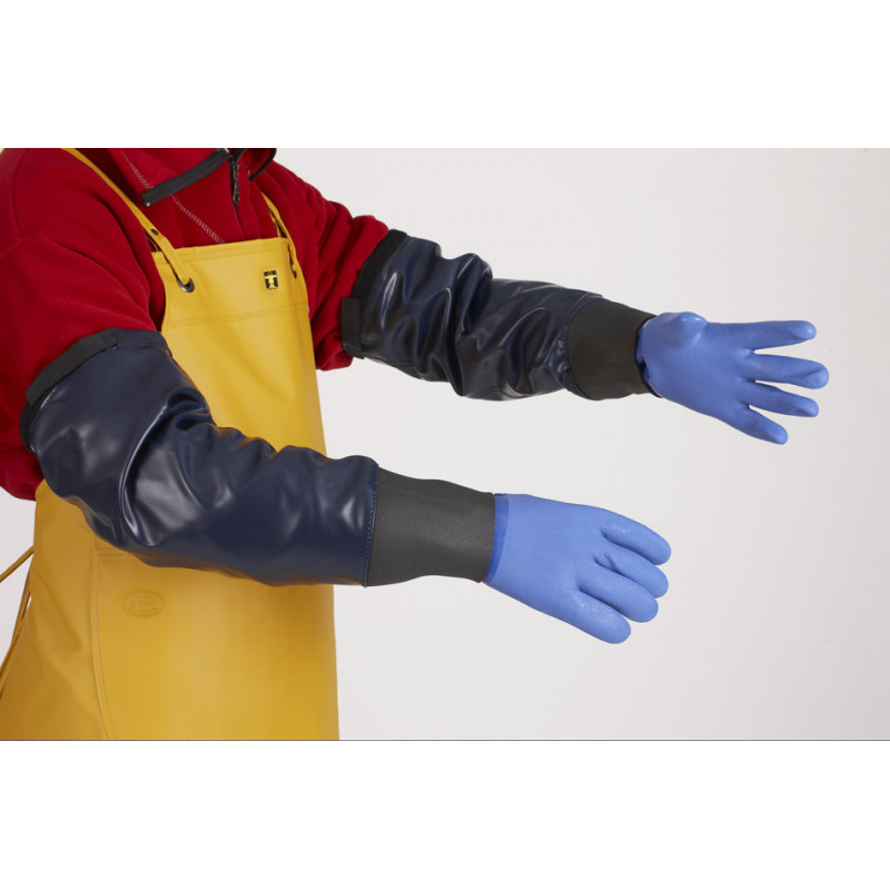 Les manchettes s'enfilent par dessus les gants pour une bonne protection des bras. Manchons d'étanchéité néoprène aux poignets.