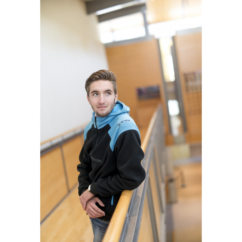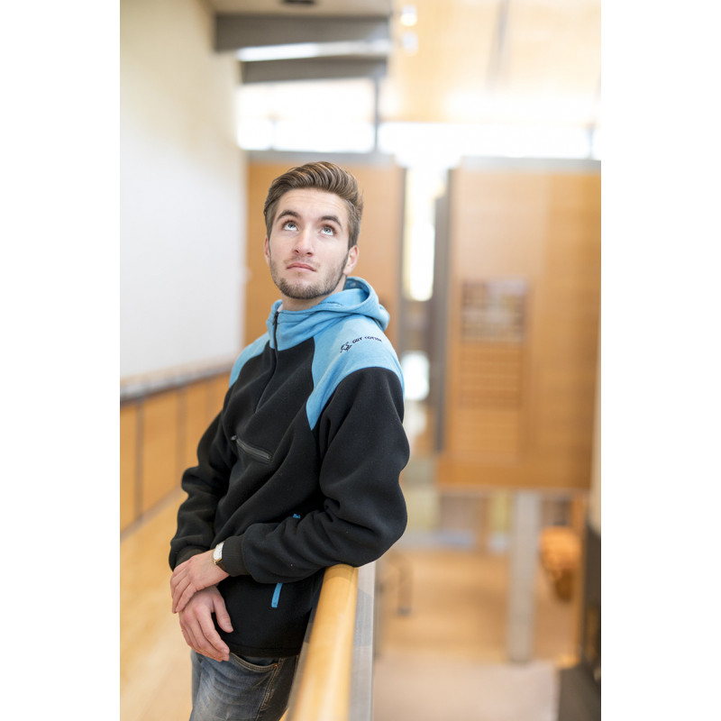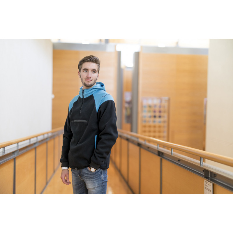 Chaleur, confort et aisance pour ce sweat polaire à capuche aux couleurs très tendances !