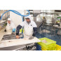 Pour une protection optimale, le tablier ISOFRANC à bretelles simples peut se porter avec des manchettes, des gants et des bottes classés EPI.