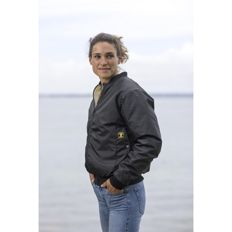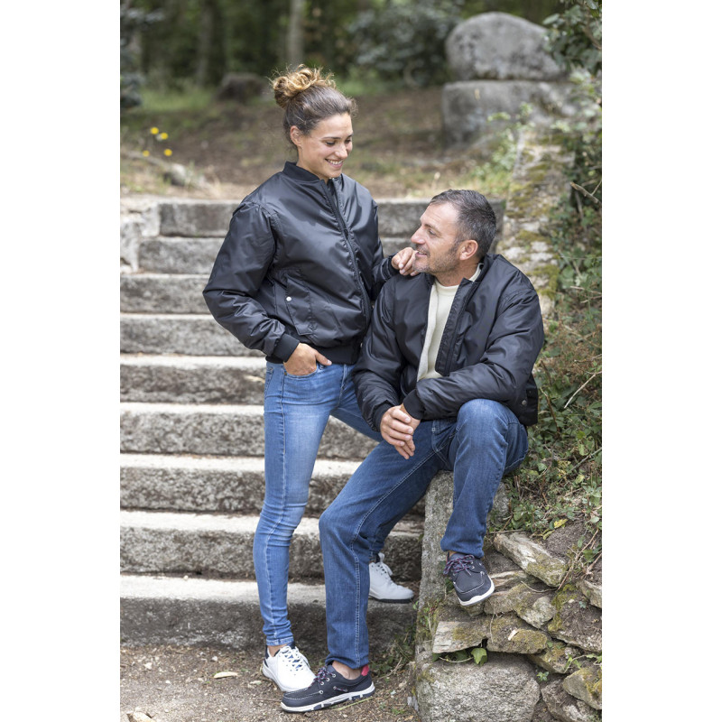 • Poignets + bas du vêtement en bord côte élastiqué noir.